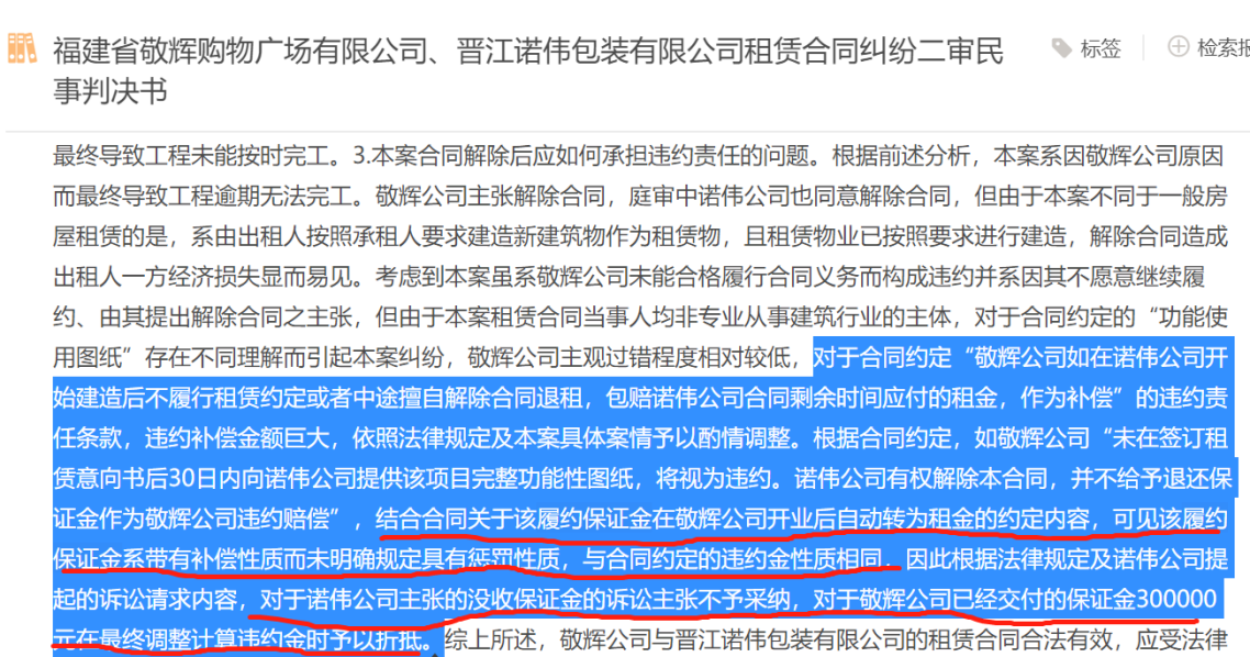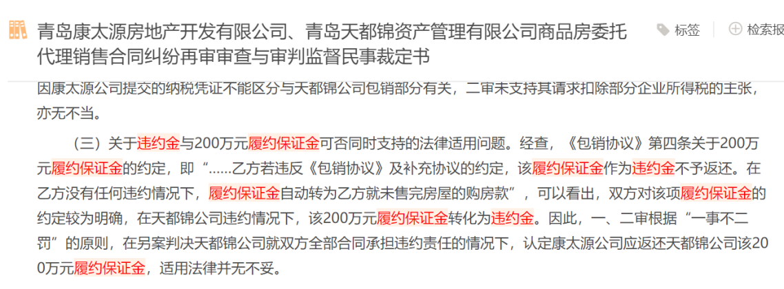 【司法观点】认定为违约金,违约金与履约保证金不能同时支持